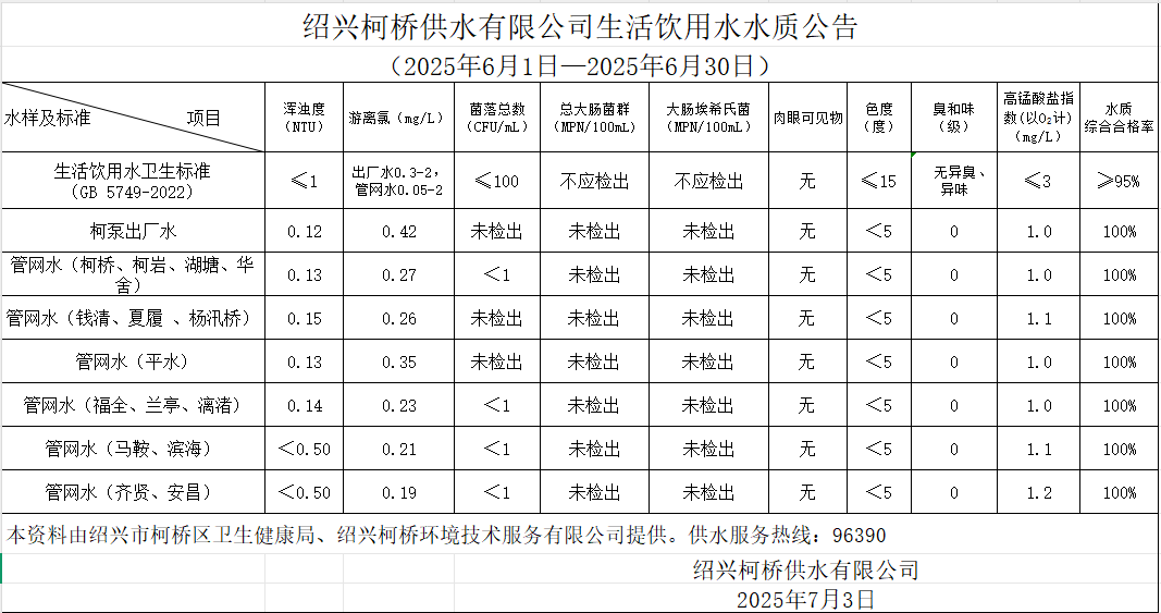 水质公告