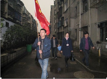 图:举着队旗,我们向社区进军