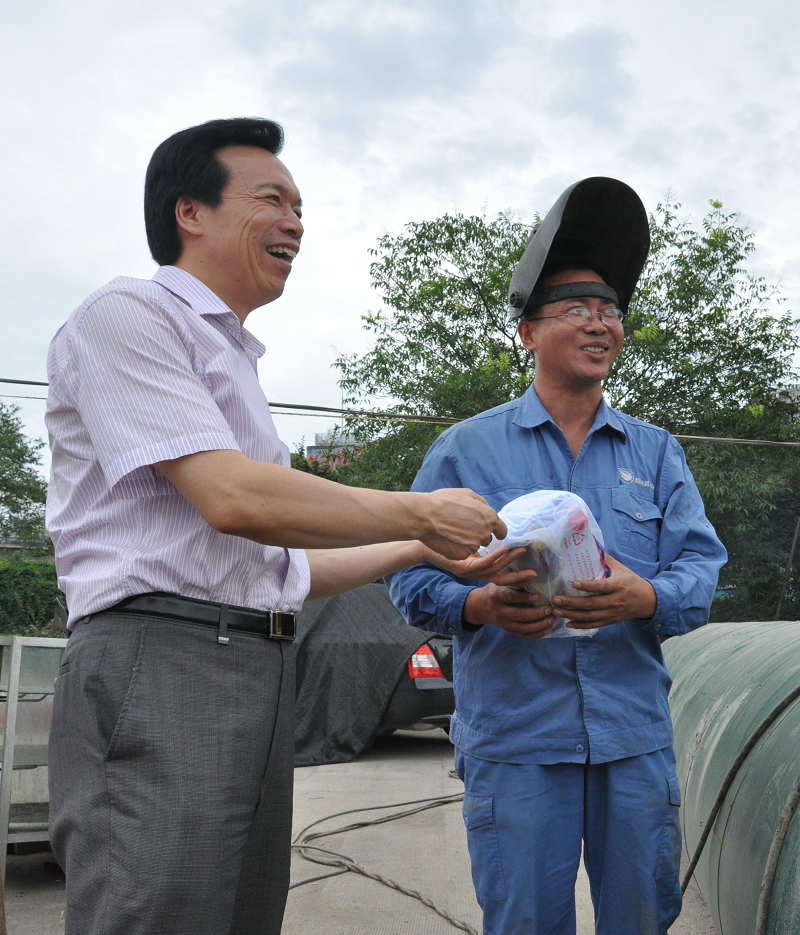 7月12日上午,县委副书记、县长孙云耀,县委副书记孟柏干等县领导冒着高温到独山DN1000自应力管改造现场慰问供水公司一线职工,向供水管道安装人员表示慰问,并送上防暑慰问品,叮嘱大家继续坚守岗位,科学安排工作,合理调整作业时间,切实做好防暑降温工作。首页公司董事长倪阿泉等有关领导陪同慰问。