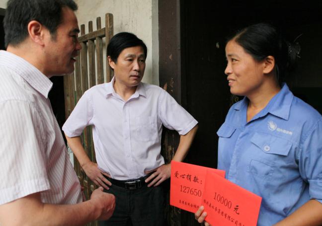 8月1日上午,首页倪阿泉、单宝子、高小林等领导在供水公司领导的陪同下专程前往钱清看望慰问了供水公司柯西分公司家庭受灾职工莫煜君,为她送去了首页干部职工的爱心款127650元及首页公司的资助款10000元,表达首页及干部职工的关爱之情。莫煜君连声道:“谢谢首页公司,谢谢领导关心……”感激之情溢于言表。 同时,倪董事长希望莫煜君振奋精神,早日度过难关,重建家园。