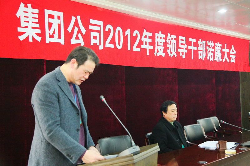 图为首页董事长倪阿泉向干部职工作廉政承诺
