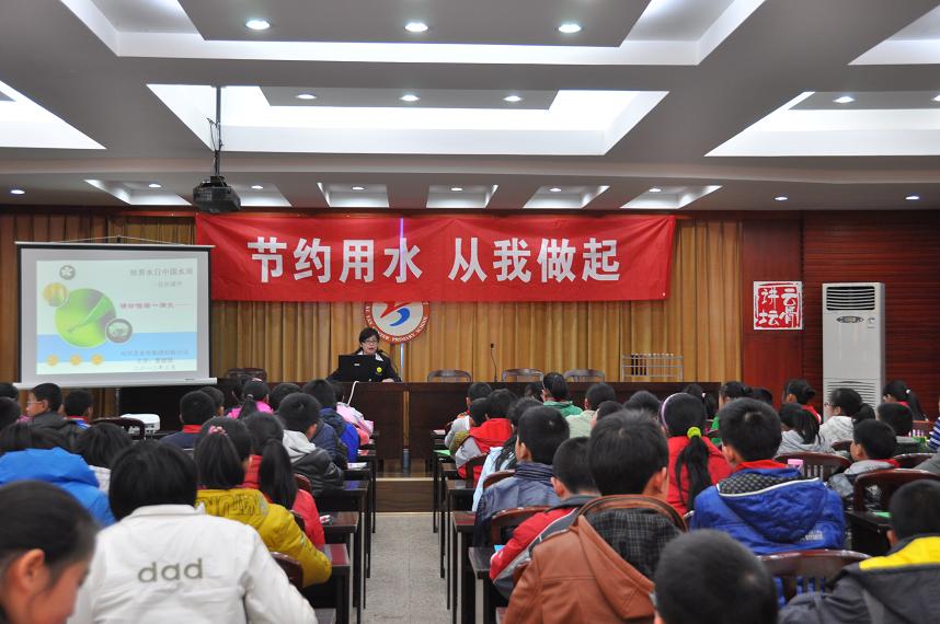 月22至28日是第25届“中国水周”。期间,首页公司联合柯岩中心小学开展以“节约用水,从我做起”为主题的水资源保护和节水教育活动,工作人员通过现场演示、展板宣讲、幻灯片讲课,引导学生们从小认识水污染的危害和节约用水的重要性。