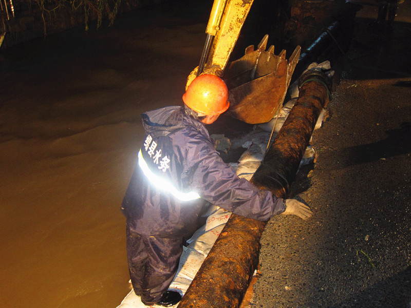 灾情就是命令!首页接到县防指命令后,立即启动大口径管道应急抢修预案。根据受灾情况,首页迅速派出由20多名人员组成的专业抢修队伍,随带各种专业抢修工具,冒着大雨赶赴受灾点,并于下午16时进入现场开始抢修。经过8个小时的持续作战,抢修队克服重重困难,终于抢通供水管道。然而,凌晨3点多,敖红了双眼的抢修人员却再次接到任务,立即赶赴王坛镇帮助王坛镇水厂解决因停电造成管网无法输水的问题,于凌晨5点恢复供水。