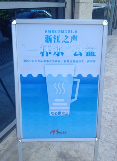 供水公司积极响应“浙江之声——一杯水公益活动”,从8月6日起,在全县各供水营业大厅设立“爱心饮水点”,