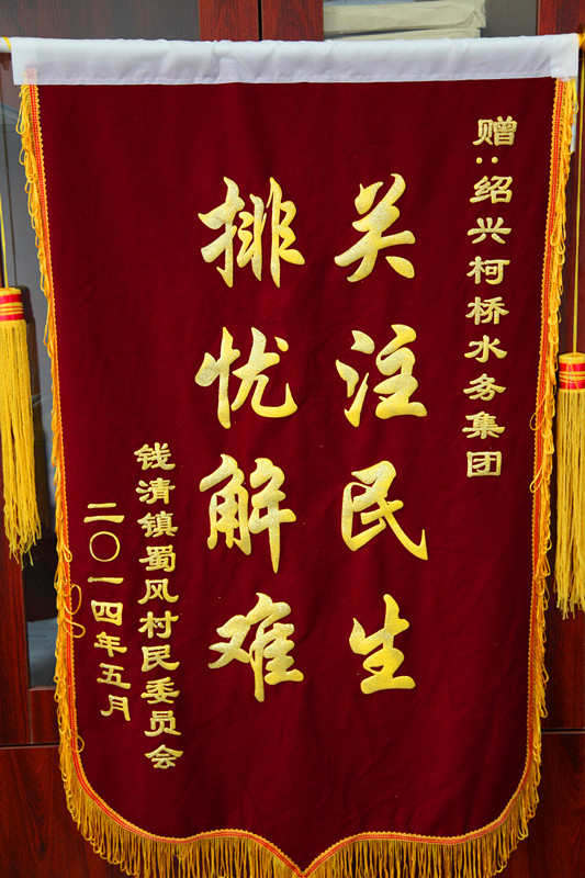 5月27日下午,钱清镇蜀风村徐万铭书记专程来到首页公司,送来一面“关注民生,排忧解难”的锦旗,感谢首页公司帮助他们解决困扰多年的夏季高峰期间供水低压“老大难”问题。