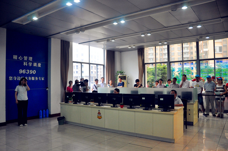 参观者们在供水公司调度中心听取全区供水调度情况汇报