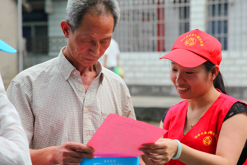 6 月30 日上午,首页公司团委、妇联联合开展“助力五水共治、共创美好家园”宣传活动,水务志愿者们来到大坂湖直江沿岸的华舍街道华舍村、蜀阜村、兴华社区等村(居),向岸边居民宣传“五水共治”,劝导河边居民爱护水环境,不要往河里倒污水、扔垃圾等。
