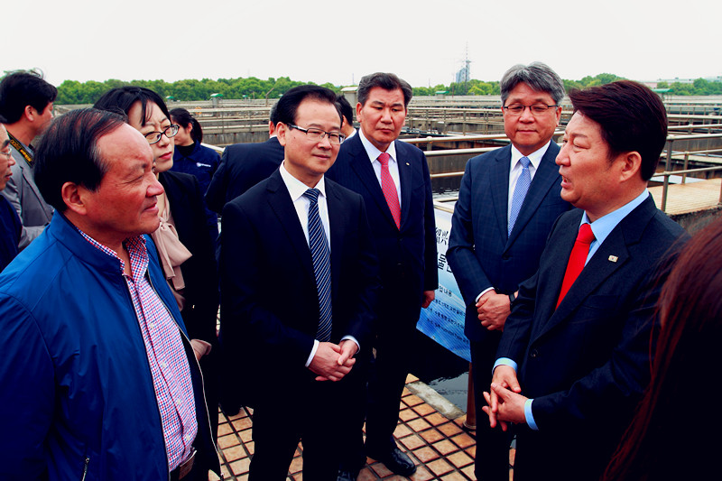 4月25日,由韩国大邱市市长权泳臻带队的韩国大邱市友好经贸访问团一行26人,在绍兴市副市长徐明光、副区长王志强等陪同下,到绍兴水处理公司参观考察。首页公司副总经理胡张尧等陪同。