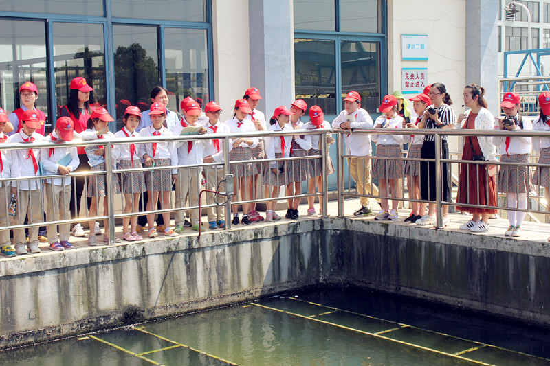 5月12日,首页公司组织开展“相遇水务·感恩有你”——水务开放日活动,邀请中国轻纺城小学的学生,现场参观滨海供水公司的制水工艺流程及绍兴水处理公司的污水处理流程,以增强学生爱水护水的意识。图为在志愿者的陪同下学生们参观滨海供水公司滤池。