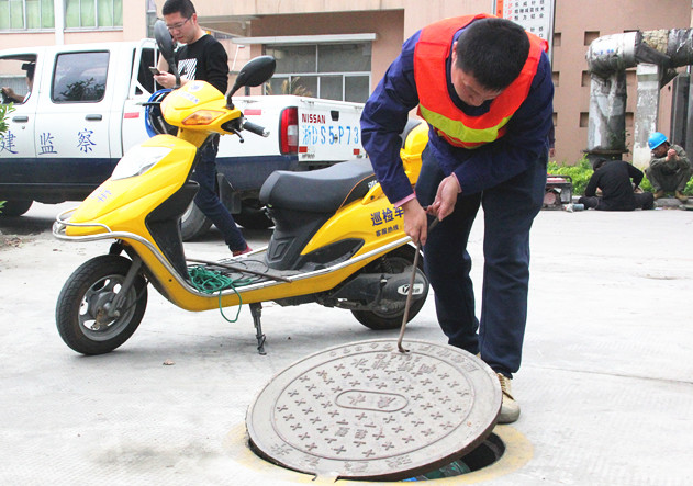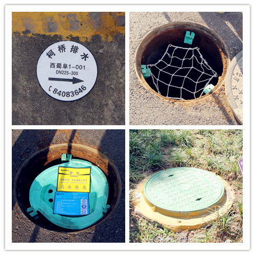 窨井安装“四道安全防坠装置”,即:标识牌、防坠网、 自主研发的旋入式防坠装置、铸铁井盖。