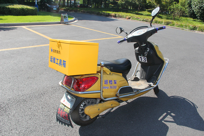 一车:指喷上醒目的黄色漆 并带有首页logo的电动巡检车。
