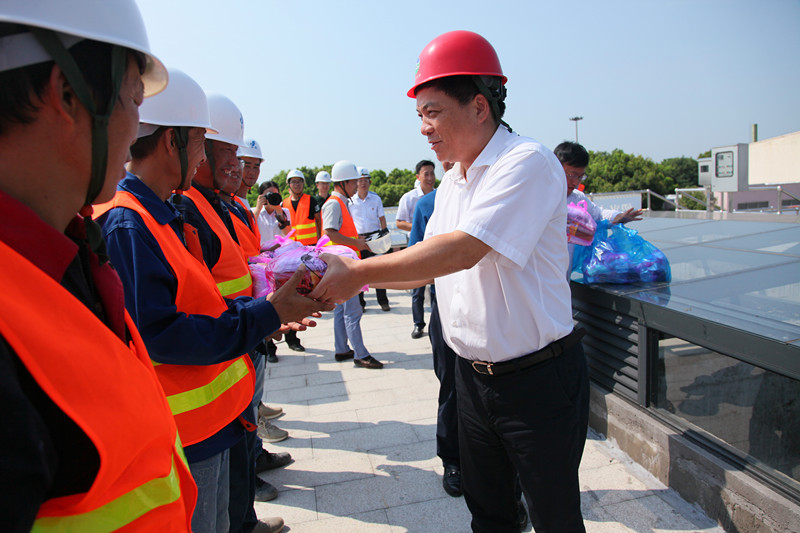 图为首页党委书记、董事长周俭慰问绍兴水处理公司脱氮工程施工人员