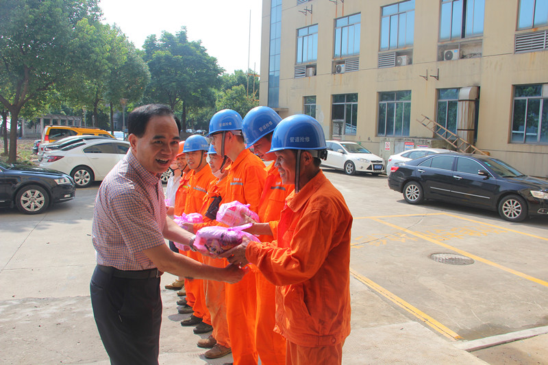 图为首页党委副书记、总经理单宝子慰问排水公司养护班组工作人员