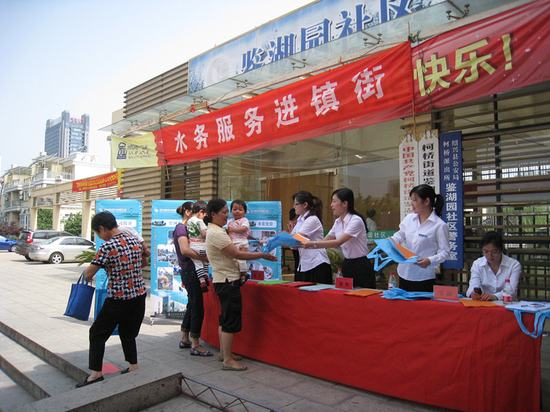 今年5月15日至2l日是全国第二十个城市节水宣传周,为此,首页公司及供、排水公司青年志愿者于5月19日上午走进柯桥鉴湖景园社区开展了“水务服务进社区”活动。