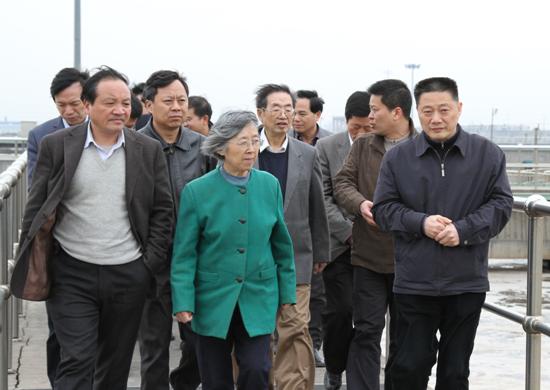 4月3日下午,由全国政协原副主席、中国工程院院士钱正英任组长的中国工程院“浙江沿海项目组”一行到水处理公司调研。市委副书记、市长钱建民,县委副书记、县长孙云耀,副县长丁生产,县水务首页总经理单宝子、水处理公司主要领导等陪同。 调研组一行实地踏看污水处理二期工程曝气池、沉淀池,亲身体验污水处理前、后的水质变化,并听取绍兴市、县污水进厂水质、污水处理系统运营和运作等有关情况的汇报。据悉,中国工程院“浙江沿海项目调研组”此行主要就浙江省沿海及海岛综合开发战略研究开展专项调研。图为调研组一行在曝气池上踏看。