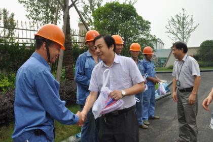 7月18日上午,首页公司党委副书记高小林、副总经理王嘉贤在供水公司领导的陪同下到城区蓝天玫瑰园小区工地和福全富强村新桥桥管改造现场慰问供水一线职工,送上防暑慰问品,并叮嘱大家在高温酷暑下作业要注意做好防暑措施。