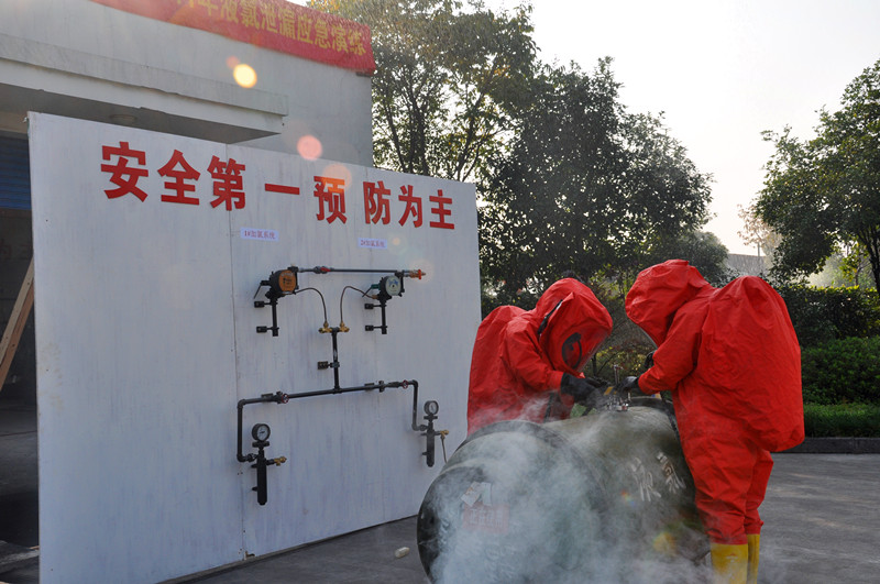 本次演练主要由液氯钢瓶瓶体泄漏及增压管道泄漏抢修和公司本部大楼人员疏散两部分组成。演练过程中演练人员基本能掌握要领和注意事项,