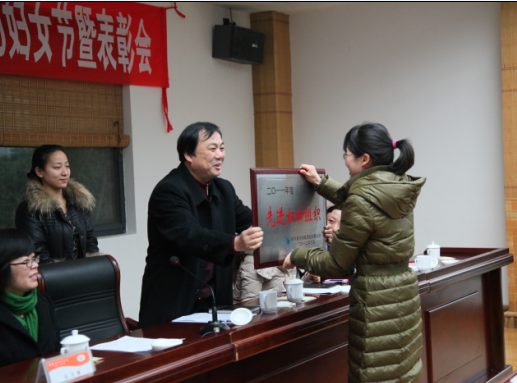 图为首页高副书记为获得2011年度妇联先进集体颁奖