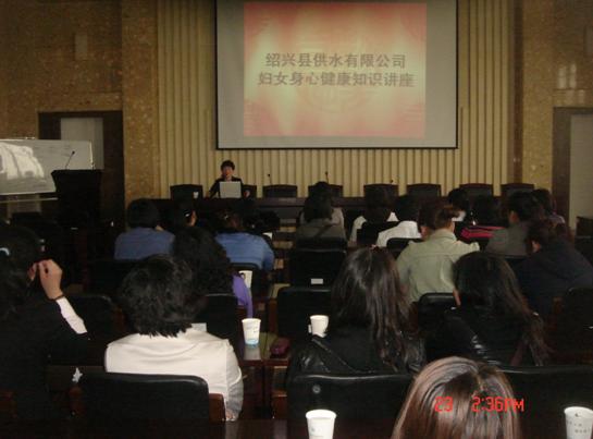 供水公司妇委会关心每位女职工的身心健康。(2010年)四月份邀请到了县中心医院妇科主任医师宋佳来公司作《妇女身心健康知识》讲座,50多名女职工听了讲座,并针对自身身体状况向宋医师咨询了解,通过专家的讲解使女职工们受益非浅。
