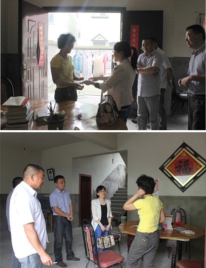 在娄女士家中,倪主任向她询问了生活情况及子女学习情况,并鼓励她能积极的面对生活,树立面对困难的信心。满满的关心与祝福如同客厅中间挂着的“福”字,传递着希望。
