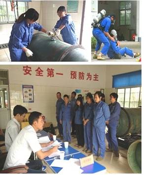 本次演练分空气呼吸机正确佩戴使用和瓶身、针型阀应急堵漏操作两个项目进行,参演人员在现场模拟出的紧张氛围中都能井然有序、有条不紊地完成全套动作。通过本次液氯演练,提高了值班员对突发事故的分析应对处理能力,取得了较好的效果。