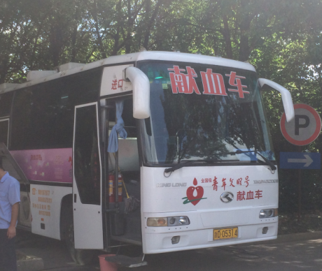 一大早,市中心血站的献血车早早地停靠在了公司办公大楼前的树荫下,一楼会议室内也早已人头攒动,员工们正在井然有序地填写献血表格,依次进行着初检。