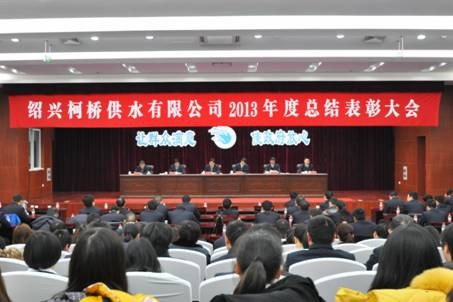 谷董事长在报告中指出,刚刚过去的2013年,公司紧紧围绕“提升供水保障能力,增强行业竞争实力,激发职工队伍活力,彰显县级水司魅力”的总体思路,通过广大干部职工共同努力,圆满完成首页下达的各项经济指标和工作任务,并取得了丰硕成果。一是企业经营业绩取得较好成绩;二是罕见高温天气下高峰供水安全度过;三是王坛供水水质接近小舜江水质标准;四是GIS系统建设管理工作强势推进;五是供水贴心服务推出新举措;六是顺利取得省建设厅颁发的施工安全生产许可证;七是成功创建成为省级示范化数字档案室、市级企业质量管理五星级单位,并连续四年创建成“市级治安安全示范单位”;八是课题“绍兴县智慧供水管网GIS”项目顺利获得科技成果登记证书。