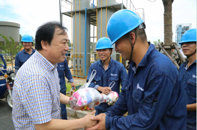 7月23日,首页党委副书记高小林到公司中试现场及泥处理车间慰问一线职工,送上毛巾、消暑饮料等防暑用品。