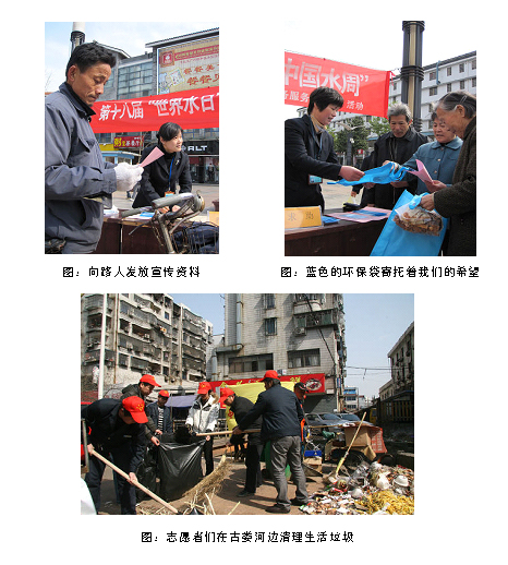 3月25日上午,在柯桥综合市场门口接受现场业务受理(新装用户接水、工业污水入网、报漏报修等);用户的咨询、投诉、建议;发放企业概况、业务办理流程、节水常识及环保袋,共发放各类宣传资料450余份。下午,组织40多名青年志愿者到古娄河进行“关注水质,珍爱‘生命之源’”的青年志愿活动。志愿者们分工明确,一组清除大街上的垃圾、清理垃圾堆,打捞河面漂浮物;另一组则是向市民发放由县水务首页团委印发的“节约用水倡议书”和节约用水、保护水资源的宣传材料,志愿者们边讲解节约用水的小常识,边宣传和号召大家“从每一件小事做起,节约每一滴水”、“关好水龙头,杜绝水资源浪费”。此次活动共向群众发放节水常识宣传资料、节水倡议书等200余份,积极增强群众节水及环保意识。