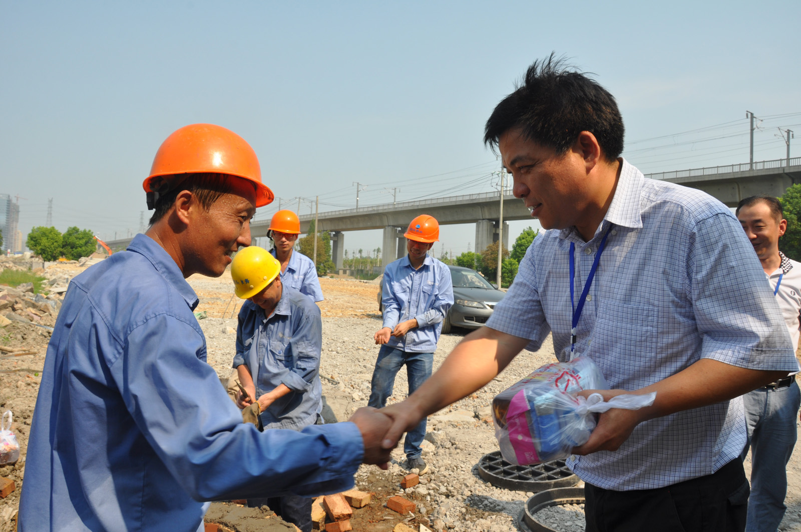 月27日上午,首页公司董事长周俭在公司董事长谷连森、总经理李叶茂等领导的陪同下,前往柯桥城区金昌诚园小区和兴华路与镜水路交叉口配套工程施工现场,慰问坚守岗位的一线职工,为他们送上了消暑饮料及毛巾等防暑用品,并叮嘱大家在高温酷暑下尽量错时作业,注意做好防暑措施。