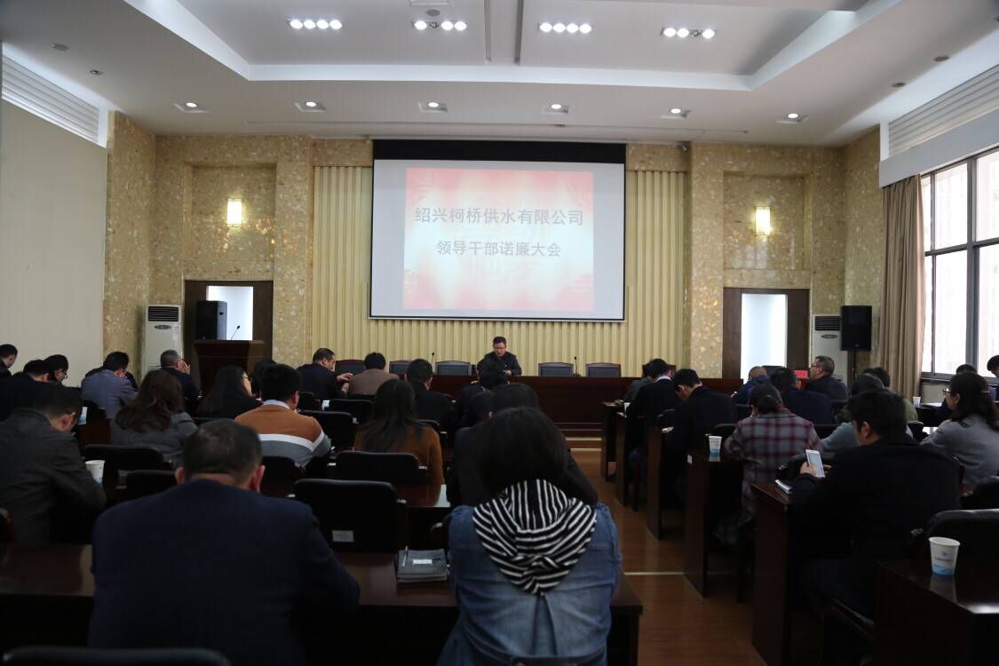 会上,公司领导班子成员及供水分公司经理分别上台诺廉;公司党总支书记吴绍文代表党总支分别与各支部签订清廉国企责任书;会上还开展了第四批源头干部推选,并组织全体与会人员观看了廉政教育影片。