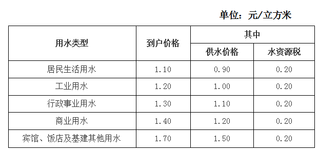 王坛、稽东镇自来水水价收费标准