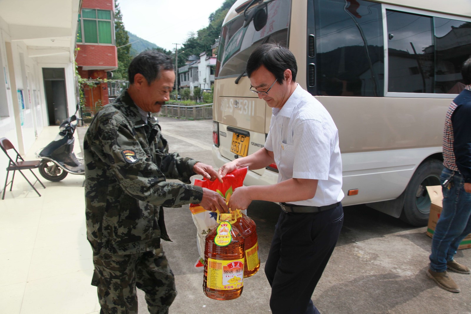 9月30日上午,首页领导周俭、朱志康、孙挺军代表首页在国庆中秋“双节”来临之际,给稽东镇占岙村7户结对帮扶的低收入农户送来节日的慰问。